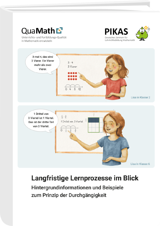Die Handreichung „Langfristige Lernprozesse im Blick“ ist als Gemeinschaftsarbeit der Projekte QuaMath und PIKAS entstanden. An Beispielen werden Hintergrundinformationen illustriert, was Lehrkräfte bei der Planung, Durchführung und Reflexion von Unterricht im Hinblick auf das Prinzip der Durchgängigkeit beachten sollten, um die Lernenden in ihrem Lernprozess zu unterstützen. Die Vernetzung grundlegender Inhalte, Aufgaben, Vorstellungen und Darstellungsmittel nimmt hierbei einen besonderen Stellenwert ein.